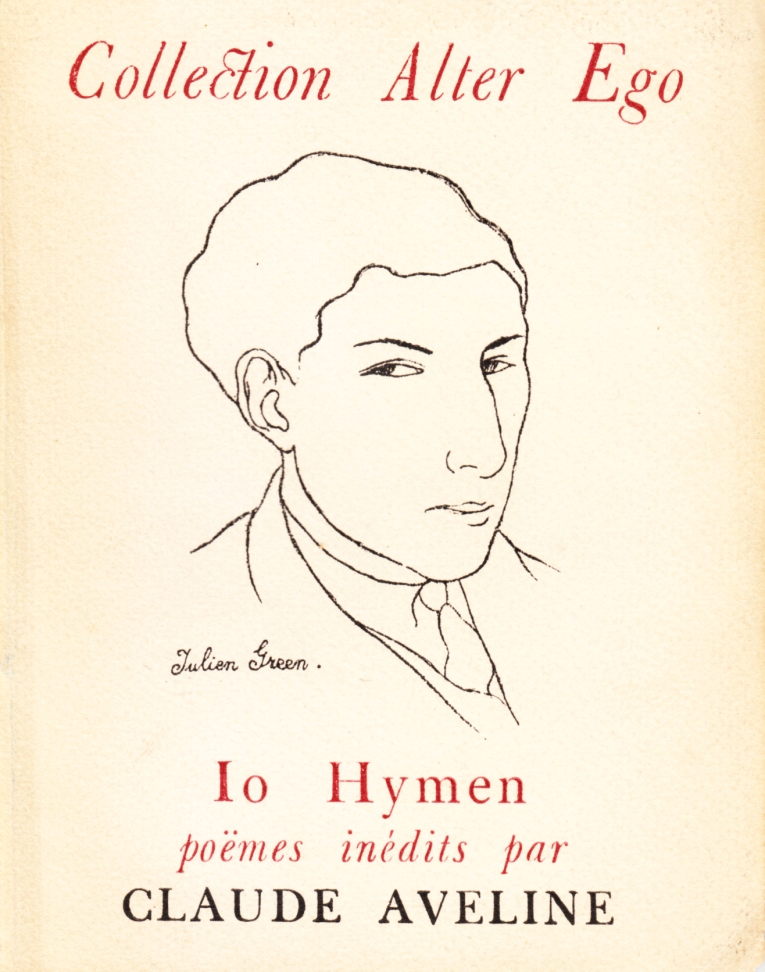 2. AVELINE, Claude Io Hymen. Poëmes inédits. Suivi de Chants Funèbres. (Met handgeschreven opdracht). Parijs, François Bernouard, 1925. Origineel omslag met een portret van de schrijver door Julien Green. 40 p. Een van 1000 ongenummerde exemplaren. 1e druk. Rugje beschadigd, boekblok los.