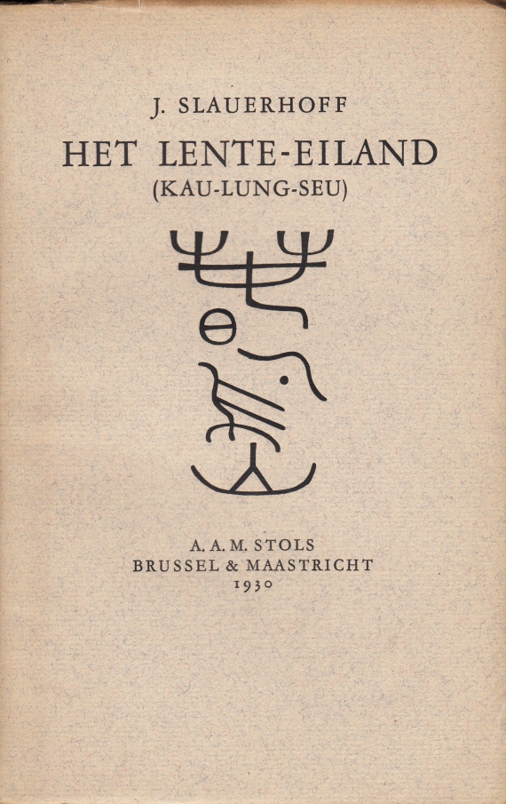 29. SLAUERHOFF, J. Het Lente-eiland. (Kau-Lung-Seu). Brussel/ Maastricht, Stols, 1930. Ingenaaid. 48 p. Onafgesneden. Gezet uit de Garamond en gedrukt op geschept papier van Pannekoek in 150 genummerde exemplaren. 1e druk. Ongenummerd, maar een zeer fris en fraai exemplaar.