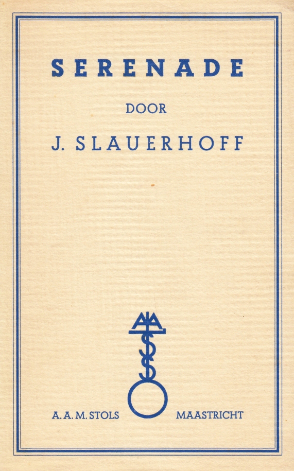 31. SLAUERHOFF, J. Serenade. Gedichten. (Luxe-exemplaar). Maastricht/ Brussel, Stols, 1938. Ingenaaid. 48 p. Gezet uit de Lutetia van Van Krimpen [en gedrukt in een oplage van 510 exemplaren]. 2e, door K. Lekkerkerker herziene druk. Mooi en gaaf.