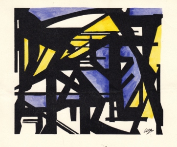 * Fraai meerzinnig stapelend gedicht, fors in pen gesigneerd door Thelen, en voorzien van een prachtige linosnede van Zbigniew Dolatowski. Op het omslag bovendien een klein potloodopdrachtje aan Huib van Krimpen van A.P. ofwel Arno Piechorowski.
