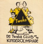 38. TWEKA De Tweka Club op de Kinderolympiade. Geldrop, N.V. Tweka Tricotfabrieken, jaren 50. 11 x 11 cm. Geniet. 12 p. Rijmpjes en tekeningen, gedrukt in geel en zwart. Netjes.