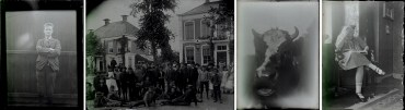 4. BELCAMPO Collectie foto’s in de vorm van glasnegatieven. 45 stuks. Diverse formaten. Circa 1900-1920. In originele kartonnen doosjes, bij elkaar in (iets roestig) koekblik van ‘Biscuitsfabriek “Goudenayre” Blom & Edauw Apeldoorn’.