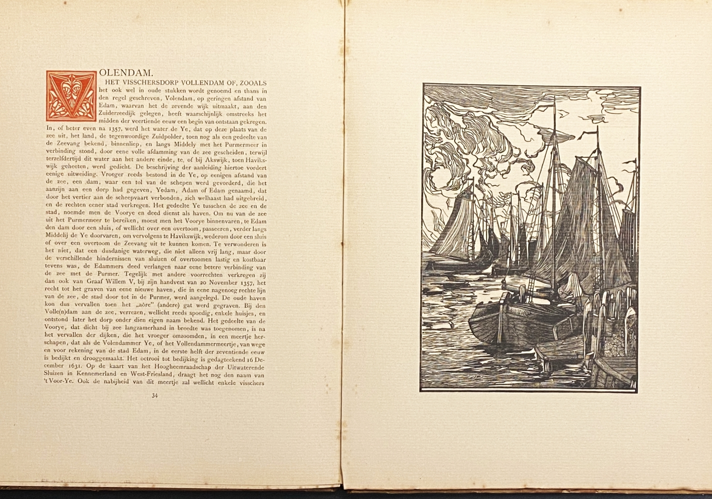 * Ambitieuze, grote, maar kwetsbare uitgave over Monnikendam, Edam, Hoorn, Enkhuizen en Medemblik. Prachtig art-nouveauboek over de stille steden vol oude glorie aan de Zuiderzee. Voorin een uitvoerige verantwoording door Veldheer, de initiatiefnemer van deze tweedelige serie, die in het hierop volgende deel nog verder vervolmaakt werd. Er zou zelfs nog een Duitse en een Engelse vertaling uitkomen.