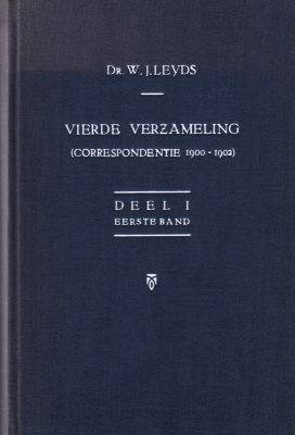 18. LEYDS, W.J. Vierde Verzameling (Correspondentie 1900-1902). (Als manuscript gedrukt). Compleet in drie delen. Dordrecht, Geuze, 1934. Drie delen. Blauw linnen met witte opdruk. 760, 252 p. Met bijlagen en register. Genummerde editie. 1e druk. Banden deels wat verbleekt.