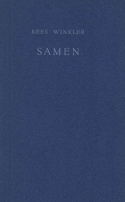 33. (SUB SIGNO LIBELLI). WINKLER, Kees Samen. Sub Signo Libelli, 1977. Ingenaaid met stofomslag. (2), 22 p. Met de hand gezet uit de Erasmus en gedrukt in blauw en zwart op Hahnemühle-Bütten in een oplage van 45 genummerde exemplaren. 1e druk.