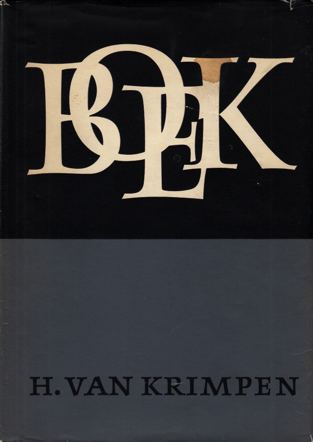 25. KRIMPEN, Huib van Boek over het maken van boeken. Arnhem, Van Loghum Slaterus, 1966. Linnen met stofomslag (band- en omslagontwerp Helmut Salden). 416 p. 1e druk. Wat scheurtjes aan de randen van het omslag, en een bruine vlek op de K.