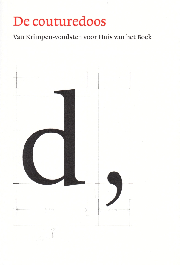Vorige week ontving een aantal van u het boek De Couturedoos. Van Krimpen-vondsten voor Huis van het Boek. Dit boekje werd verspreid onder de Vrienden van Museum Meermanno om de verwerving van een aantal archiefstukken van Jan en Huib van Krimpen te vieren. Het werd geschreven door Paul Snijders en Marieke van Delft, en het bevat behalve een beschrijving van de stukken ook biografietjes van de hoofdpersonen Jan van Krimpen, zijn vrouw Nini Brunt en hun zoon Huib, voluit Huibrecht van Krimpen. Dankzij vormgever Sander Pinkse is het een lust voor het oog geworden.