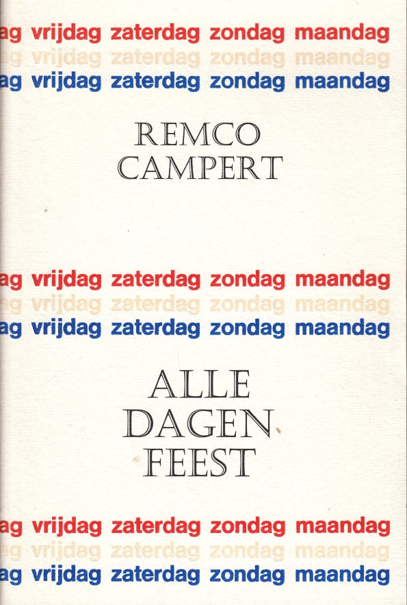 10. CAMPERT, Remco Alle dagen feest. Woold-’t Harkel, De Uitvreter, 2011. Cahiersteek. 16 p. Met portret van Campert uit 1949 door Rudy Kousbroek. Gedrukt in 70 genummerde exemplaren. Gezet uit de Bembo en gedrukt op 160 gr. (zwaar) Velin Arches. 1e druk.