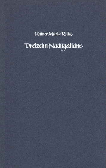 48. RILKE, Rainer Maria Dreizehn Nachtgedichte. Baarn, Arethusa Pers, 1989. Ingenaaid met stofomslag. (32) p. Gedrukt naar calligrafie van Franz Stummvoll in een oplage van 125 genummerde exemplaren.