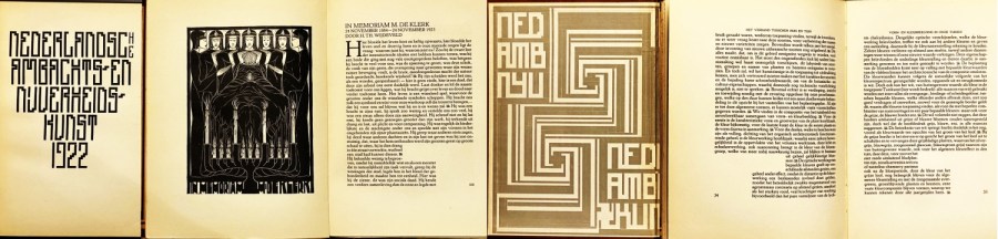 32. (LAUWERIKS, J.L.M.). V.A.N.K. Nederlandsche Vereeniging voor Ambachts- en Nijverheidskunst. Jaarboek 1922. Rotterdam, W.L. & J. Brusse, 1921. 25 x 19 cm. Ingenaaid. XVI, 72, 84 p. Geïllustreerd. Met twee houtsneden van Chris Lebeau. 1e druk. Mooi exemplaar.