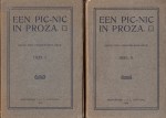 * Derde druk van deze bloemlezing uit de Tachtigers met werk van o.a. A. Aletrino, Frans Coenen, Louis Couperus, Lodewijk van Deyssel, Frederik van Eeden, Marcellus Emants, Frans Erens, Willem Kloos, Jac. van Looy, Arij Prins, Stijn Streuvels en Albert Verwey. Bandontwerp van Heukelom met distels, grasjes en kleine bloemen in kader, en iets groter dan bij de tweede druk. Deze pic-nic is als enige in twee delen uitgevoerd, en zelden als zo’n fraaie art-nouveau-set te koop. Braches Bouwstoffen p. 254.