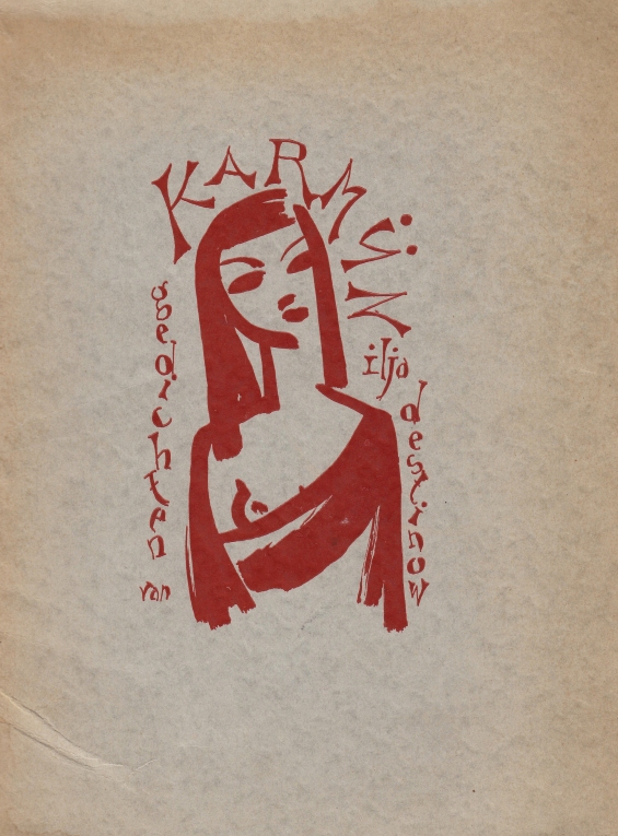 21. DESTINOW Karmijn. (Gedichten.). Kortrijk, Steenlandt, 1938. Ingenaaid. 64 p. Gedrukt in een oplage van 100 genummerde exemplaren. 1e druk. Licht verkleurd. Omslag wat gekreukt. Voorin inscriptie van de voormalige eigenaar, And. Munnichs, met jaartal 1947.