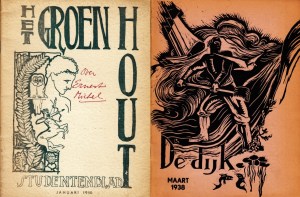 9. BOMANS e.a., Godfried De Dijk. Nederlandsch blad voor Katholieke studenten. 9 nummers. (Leiden, Unie van Katholieke Studentenvereenigingen in Nederland). Jrg. 2, afl. 1 (oktober 1933). Jrg. 3, afl. 7 maart 1935). Jrg. 4, afl. 9 (mei 1936). Jrg. 6, afl. 4-7 (december 1937-maart 1938). Jrg. 8, afl. 6 en 8 (januari en maart 1940) resp. onder de titel Het Groen Hout en Het Groen Hart. Geniet.