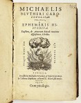 * Dit is een soort renaissance-agenda, samengesteld door Michael Beuther (1522-1587), een Duitse geleerde uit de kring van de kerkhervormer Melanchthon, waarin alle dagen van het jaar een pagina hebben waarop een of meer historische gebeurtenissen van die dag worden vermeld. Met daarbij veel ruimte om er zelf iets bij te schrijven – maar dat is in dit exemplaar niet gebeurd. (Een beroemd geval waarin er wel in geschreven is, is de Ephemeris historica uit het bezit van Michel de Montaigne).