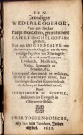 * Fel anti-jezuïtisch (‘Iesu-wyten’) en anti-rooms-katholiek boekje, uitgegeven met steun en een subsidie van de protestantse Bossche autoriteiten. Puntsgewijze reactie op Tafele des Gheloofs (1617) van de jezuïet Jacobus Stratius. Schaarse Bossche publicatie.