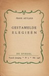 39. MEYLAND, Frank Gestamelde elegieën. (Met handgeschreven opdracht). Hoogstraten, De Spiegel-Moderne Uitgeverij, 1946. Geniet. 20 p. Met portret naar Marc Neels. 1e druk.