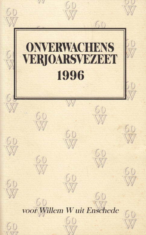 * Verrassingsuitgave voor Willem Wilmink en de gasten op zijn zestigste verjaardag op 25 oktober 1996 in de Twentse Schouwburg in Enschede. Bevat bijdragen van Jan Boerstoel, Tom van Deel, Drs P., Rutger Kopland, Jan Kruis, Jean Pierre Rawie, Edwin Rutten, Henk Spaan, Kees Stip, Herman van Veen, Ivo de Wijs, Driek van Wissen en, los bijgevoegd, Jan Kruis.