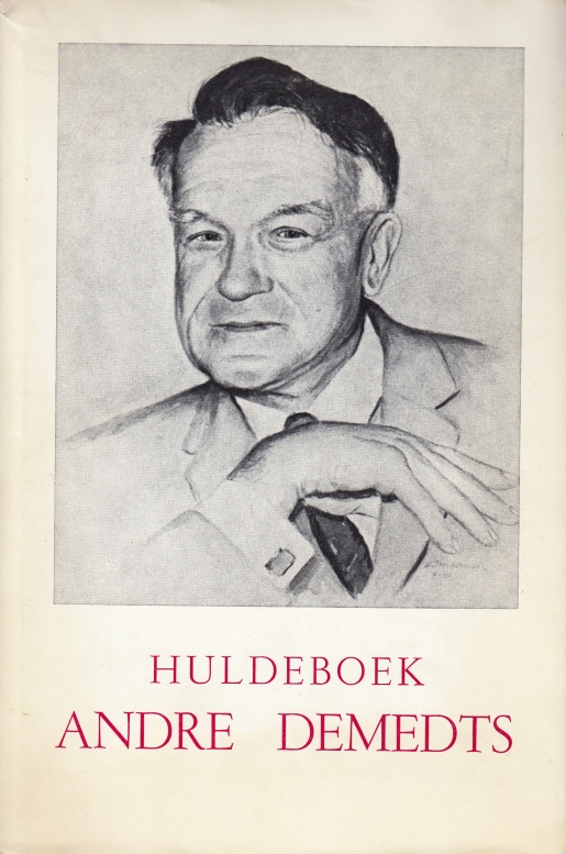 14. DEMEDTS, André Huldeboek André Demedts. (Met inliggend een handgeschreven, gesigneerde brief van Demedts aan André Munnichs, 1950). Kortrijk, Davidsfonds, 1977. Linnen met stofomslag. 236 p. Met portret. Gedrukt in 1300 genummerde exemplaren. 1e druk.