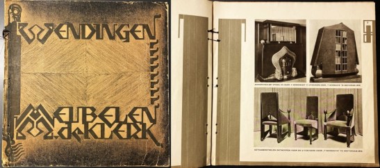 * Inleiding van H.Th. Wijdeveld, omslag aan beide kanten van Fokko Mees. De foto’s (natuurlijk in zwart-wit, of eigenlijk bruin-crème) laten de meubels en ontwerptekeningen bijzonder goed uitkomen, wat niet altijd het geval is in andere nummers van Wendingen. Helaas is de staat matig.