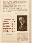 41. SCHMITZ, Marie Letterkundige kalender 1927 samengesteld door Marie Schmitz. Amsterdam/ Antwerpen, [1950]. 30 x 22 cm. 30 afscheurbladen op kartonnen achterblad, bedrukt in bruin en met een in bruine diepdruk uitgevoerde, opgeplakte foto. Een of twee weken per blad, met een portret en een citaat van de afgebeelde auteur. Voorblad wat gebobbeld en aan de blanco achterkant geplakt, wat roestvlekjes.