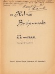 49. (VORRINK, Koos). STAAL, K.R. van Terug uit de hel van Buchenwald. Amsterdam, Nieuwe Wieken, 1945. Geniet. 48 p. Netjes.