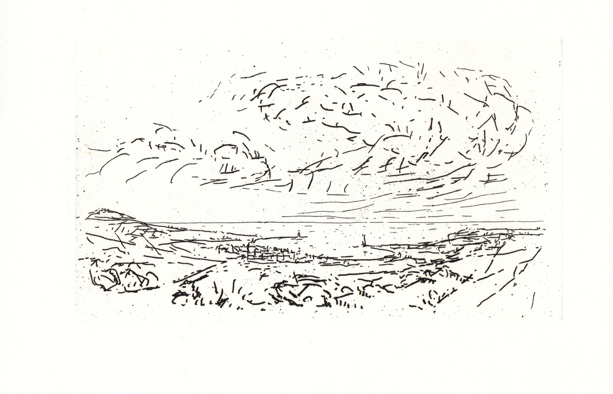 43. SLOTHOUWER, Nico Groei en groei. (Met zeven originele etsen van R. Varing). (Deventer, eigen beheer), 1977. Oblong. 4to. Garenloos met blind omslag. Op Chinese blokboekwijze gebonden. 32 p. . Gedrukt op Van Gelder Torchon Velin in een oplage van 70 genummerde exemplaren. 1e druk.
