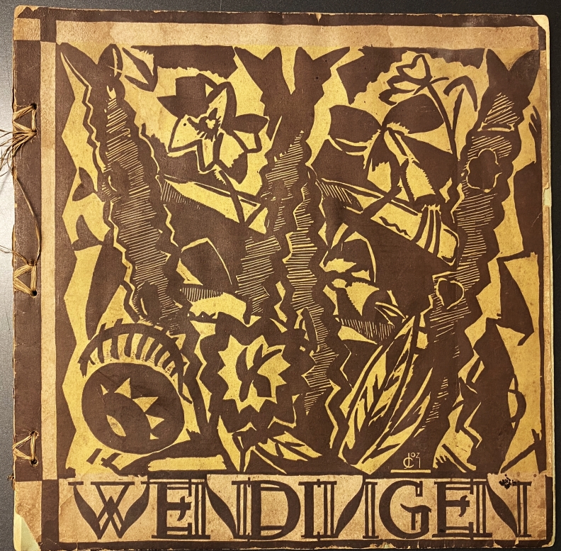 Bijgevoegd twee andere nummers van Wendingen in nog slechtere staat: jaargang 5 nr. 1 over de glas-in-loodramen van R.N. Roland Holst en jaargang 1 nr. 5 met het beeldverhaal over koning Attila in het Hongaars.