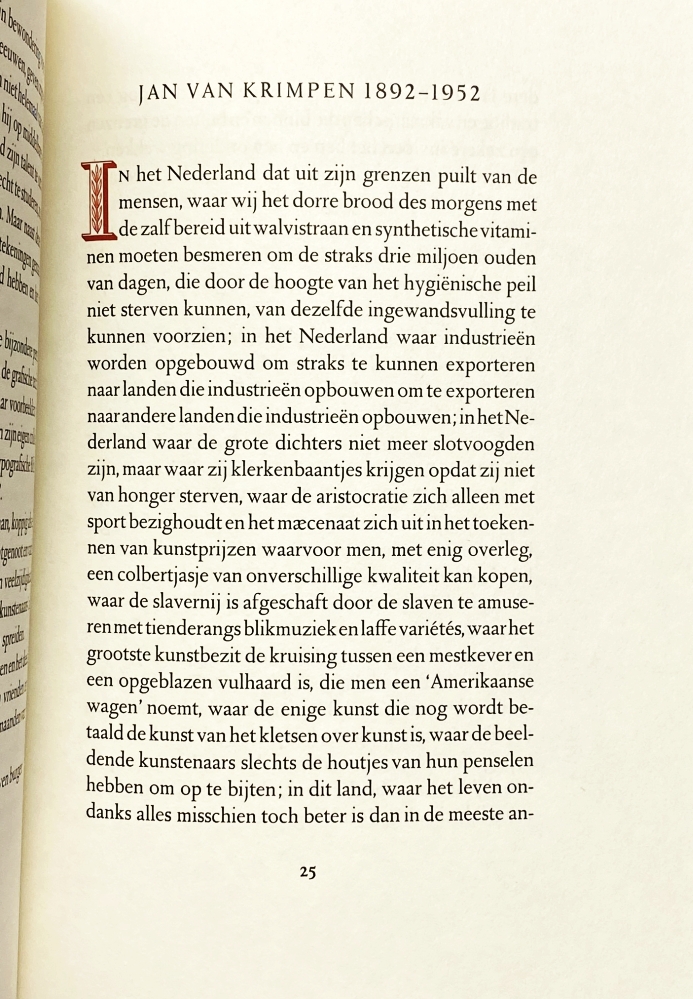 <- Kernachtige, haarscherpe en nog altijd zeer leesbare juweeltjes over onder anderen De Roos en Van Krimpen, en een overzicht van de letters die Hartz heeft ontworpen (onder meer de Juliana, met een speciaal voor deze editie ontzuurde en ingeplakte pagina uit een pocket).
