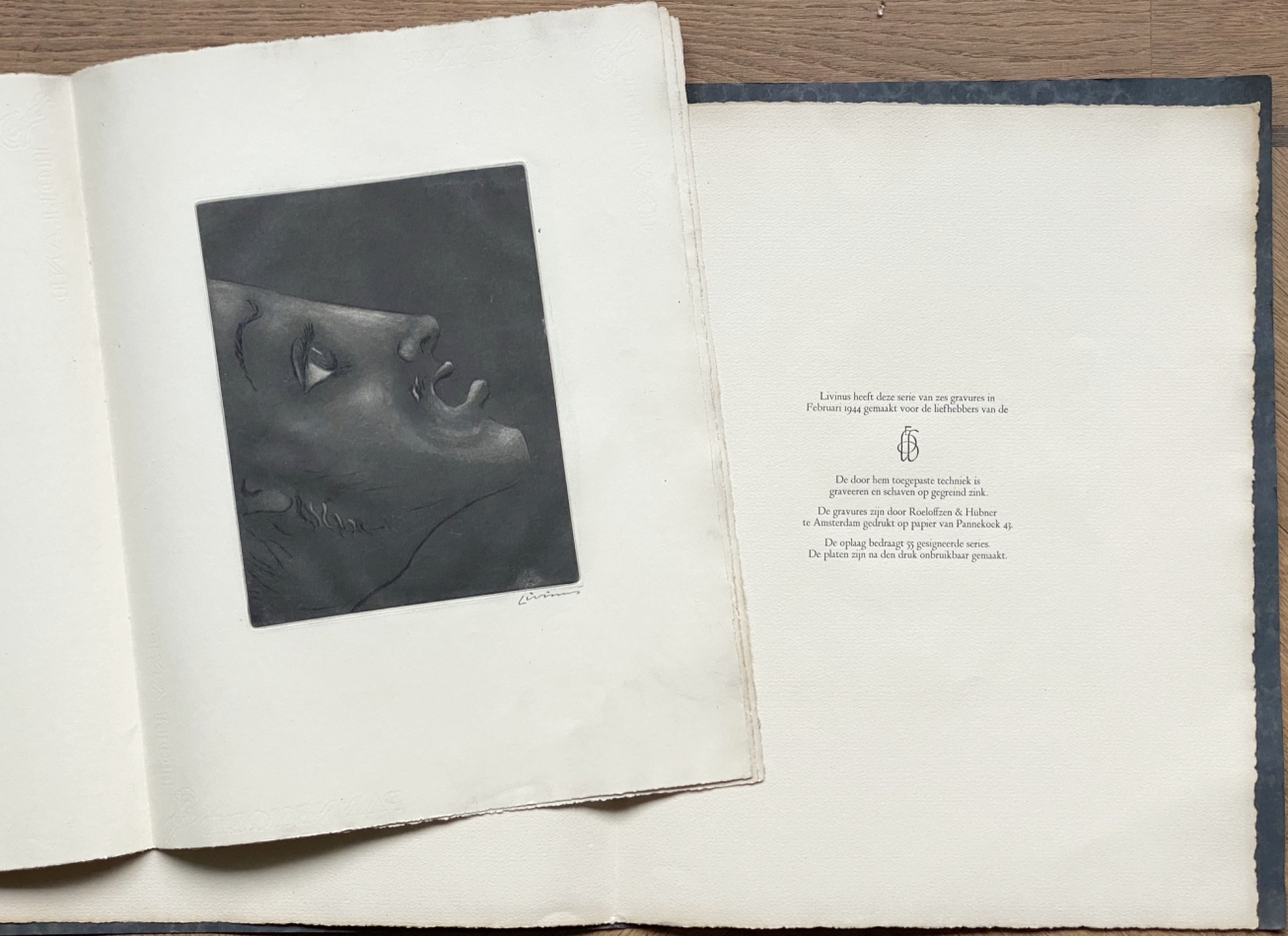 * Alle gravures werden gesigneerd door de kunstenaar. Livinus is het pseudoniem van Livinus van de Bundt (1909-1979), schilder, graficus en ‘lichtkunstenaar’, in 1947 oprichter van de Vrije Academie. De Jong 516.