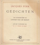 9. (BUNDT, Livinus van de). Jacques PERK Gedichten met kopergravures van Livinus van de Bundt. Met een voorwoord van ‘D.A.T. Weet ik niet’. Den Haag, (eigen beheer, 1939). 23 x 19 cm. Ingenaaid boek van 56 p. plus dossier met 6 losse bladen, doorslag van een getypte tekst (boekvoorstel), idem van een getypte brief aan L.J.C. Boucher, en een handgeschreven antwoord van Boucher (24 r.) aan Van de Bundt, gedateerd ’31-1-’39’.