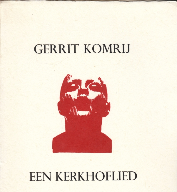 23. KOMRIJ, Gerrit Een kerkhoflied. Laatste gedichten. Kalmthout, Carbolineum Pers, 2013. 30 x 21,5 cm. Ingenaaid met stofomslag. Met de hand gezet uit de Perpetua en gedrukt in rood en zwart op Hahnemühle in een oplage van 50 genummerde exemplaren. 1e druk.