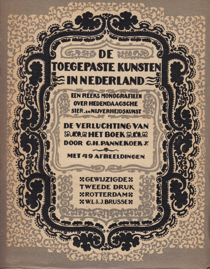37. PANNEKOEK jr., G.H. De verluchting van het boek. Rotterdam, Brusse, 1923. Ingenaaid met flappen. 64 p. Geïllustreerd. 1e druk. Omslag wat verbruind, boekblok deels los van omslag. Met exlibris van Huibrecht van Krimpen.