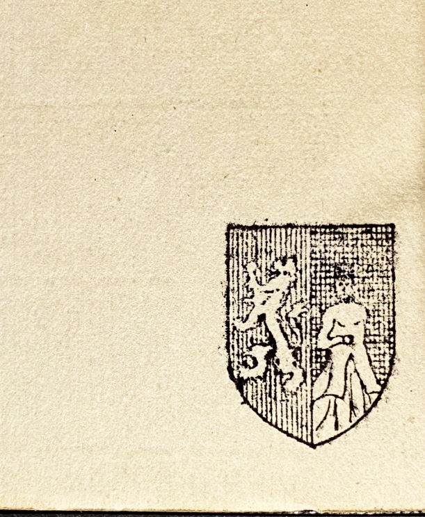 36. LA ROCHEFOUCAULD, François de Réflexions ou sentences et maximes morales. Amsterdam, (A.A. Balkema), 1942 [= 1944]. 13 x 10 cm. Gebonden in gepolijst kalfsleer met rugtitel en vergulde kaders aan de binnenkant (met stempel van J. Brandt & Zoon), oorspronkelijke voorzijde omslag meegebonden. (94) p. Gezet uit de Garamond en gedrukt op grijsgetint Pannekoek in een oplage van 200 exemplaren. 1e druk. Ruggetje wat versleten, leer is niet helemaal fris, het heeft een grijze zweem. Met voorin een monogramstempel CL of LC en achterin een wapenstempeltje met Nederlandse Leeuw en koningin Wilhelmina (? zie afb.). Uit de illegalenverzameling van A.J. Eschauzier met diens notitiepapiertje.