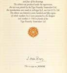 * Dit exemplaar is niet genummerd, maar onder het colofon staat gedrukt ‘Dit exemplaar is gedrukt voor’ gevolgd door ‘J. Schafthuizen’ in balpen.