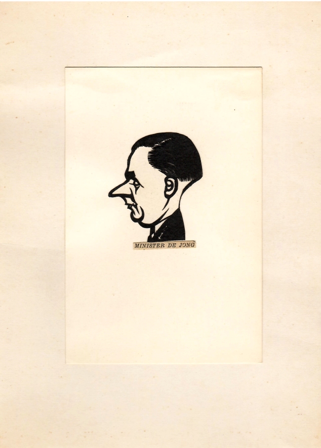 * Zeer knappe, goed herkenbare en humoristische karikatuurknipsels van ministers, staatssecretarissen. Helaas is de maker onbekend. De kaarten zijn gemaakt om te vertonen, niet klaargemaakt voor de druk. Onder anderen zien we Aalberse, Van Aartsen (sr.), Beerman, Blaisse, Bot (sr.), Bruins Slot (Dr. J.), Burger, De Jong, De Kort, Linthorst Homan, Mansholt, Marijnen (2 x), Patijn, Romme, Schmelzer, Stijkel, Toxopeus (2 x), Veldkamp, Vondeling, Witteveen en Zijlstra.