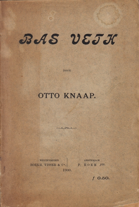 31. KNAAP, Otto Bas Veth / A.S.H. Booms. Weltevreden en Amsterdam, Boekhandel Visser & Co. en P. Roem Jzn., 1900. Origineel omslag. (2), 54 p. 1e druk. Omslag gevlekt, rug versleten. Potloodaanstrepingen bij enkele van de boudste beweringen.