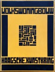 27. HUSZÁR, Vilmos (omslagontwerp), Jan WILS, H.P. BERLAGE Volkswoningbouw. Album, bevattende twintig platen van de woningcomplexen: Eerste Rotterdamsche Tuindorp “Vreewijk” – Burgemeester Vernède-park te Voorschoten – Gemeentelijke woningbouw te Hilversum – Woningbouw te Velzen en Breukelen. Teekeningen van architect Jan Wils, inleiding van Dr. H.P. Berlage, ontwerp omslag V. Huszar. Den Haag, Haagsche Kunstkring, 1921.
