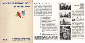 43 x 32 cm. Halflinnen portfolio met drie flappen, aan voor- en achterkant op zijn kubistisch versierd door Vilmos Huszár. 20 bladen van lichtgetint zwaar papier met tekeningen van woningen en 6 voor- en tussenbladen van donkerder papier met toelichting en plattegronden. 1e druk. Titelblad deels verbruind, de twee rechterhoekjes iets gebutst, verder mooi en gaaf.