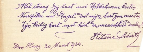 * ‘Voor ’t laatst nu ligt hij in Maria’s armen’. Ietwat handenwringend-gewrongen gedicht in het bekende hakerig-krullige handschrift van de in 1934 bij leven al vrijwel vergeten dichteres.