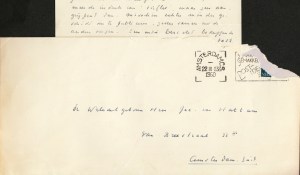 19. LUIJTERS, Guus Handgeschreven brief aan ‘Geachte Guus & Anny Marquinie’. Eén blad. Alleen recto. Gesigneerd ‘Guus Luijters’ en gedateerd ‘Oudesluis, 20 XI 1974’. 12 regels tekst. Stukje papier achterop geplakt. Met de voorzijde van de oorspronkelijke envelop.