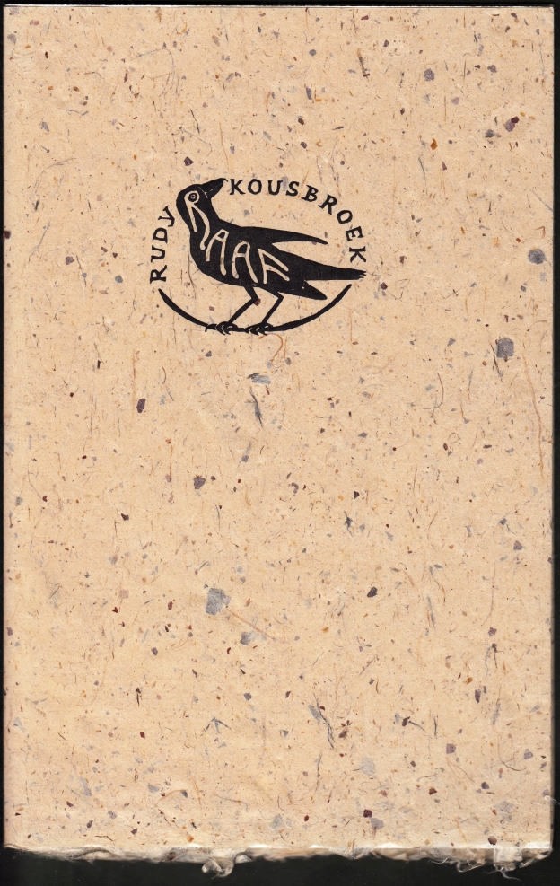 20. KOUSBROEK, Rudy Raaf. Een gedicht van Rudy Kousbroek met een linosnede en vignetten van Olivia Ettema. Den Haag, (Statenhofpers), 2010. Cahiersteek met omslag van vezelig papier. (8) p. Met de hand gezet uit de Romanée en gedrukt door Jaap Schipper op Zerkall in een oplage van 75 exemplaren.