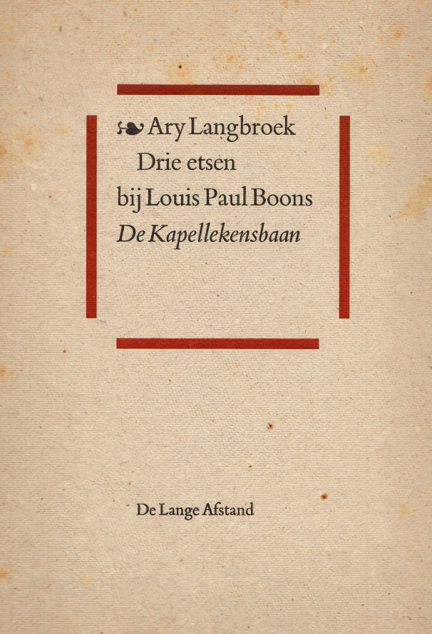4. (BOON, Louis Paul). LANGBROEK, Ary Drie etsen bij Louis Paul Boons De Kapellekensbaan. Amsterdam, De Lange Afstand, 1992. 35 x 24 cm. Ingenaaid. (24) p. Met de hand gezet uit de Bembo en gedrukt op Hahnemühle door De Zondagsdrukker te Amstelveen (tekst) en Peter Yvon de Vries te Amsterdam (etsen) in een oplage van 50 exemplaren.