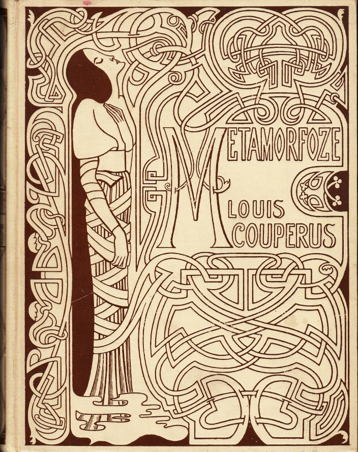 8. COUPERUS, Louis Metamorfoze. Met een Portret door H.J. Haverman. Amsterdam, Veen, [1897]. Linnen [ontwerp Jan Toorop]. (8), 432 p. 1e druk. Rug iets grauw en geschaafd, maar een mooi exemplaar van deze fraaie Toorop-band.