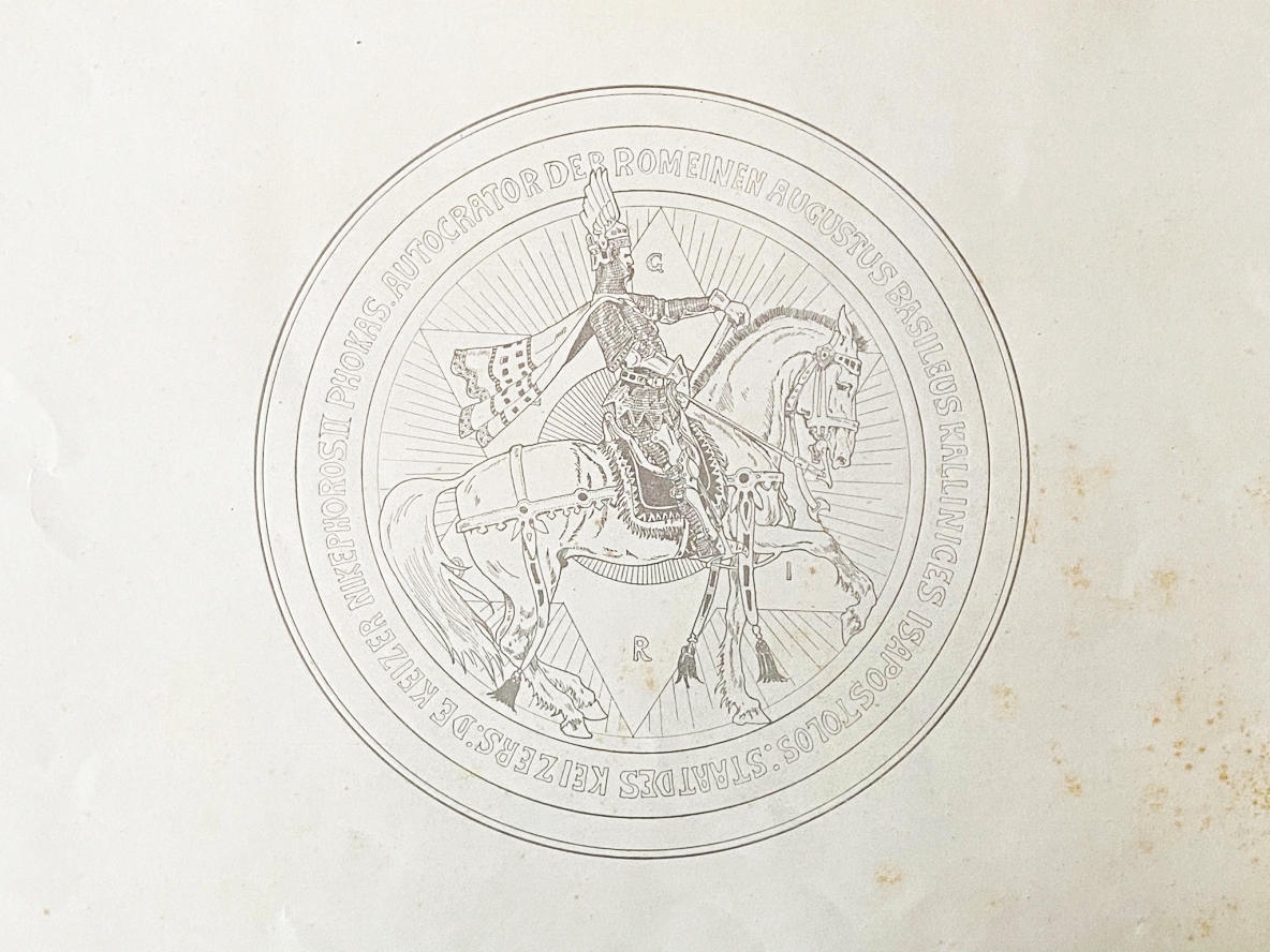 * Dit indrukwekkende boekwerk getuigt van de fantastische maskerade-traditie van de studentenvereniging-lustrumviering in de negentiende en vroege twintigste eeuw, te vergelijken met The Passion in de moderne tijd. Met dit Byzantijnse spektakel werd het elfde lustrum van het Delftsch Studentencorps gevierd. Nikephoros Phokas was een succesvol veldheer die in de tiende eeuw helaas slechts zes jaar op de Byzantijnse troon zat, tot hij door hofmachinaties (jaloerse vrouwen, jeugdige minnaars en zo) aan zijn eind kwam.