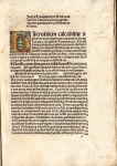 1. (INCUNABEL). AYTINGER, Wolfgang Tractatus super Methodium. Augsburg, Johann Froschauer, 1 september 1496. Karton bekleed met goud-lichtblauw sierpapier. 28 bladen, het laatste blanco, tussen twee oude blanco schutbladen van dunner papier en twee schutbladen van modern papier. Het laatste blad van de incunabel is blanco (zoals het hoort), maar er is een diepe moet van andere teksten in te ontwaren, ik meen er brede, ruim gezette kapitalen ‘MXDVI’ in te ontwaren (zie de derde afbeelding). Brede marges. Vijf vergulde en met de hand versierde initialen plus vele houtgesneden kapitalen. 1e druk. Zeer gaaf en netjes, alleen in de laatste twee pagina’s een vage watervlek.