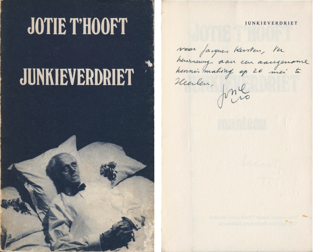 * Exemplaar met handgeschreven, gesigneerde opdracht van de auteur: ‘voor Jacques Kersten, ter/ herinnering aan een aangename/ kennismaking op 26 mei te/ Heerlen,/ Jotie’.