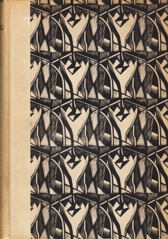 * Vrij bizar geschreven, omvangrijke roman over de lotgevallen van een Zweeds meisje in Nederland. ‘(Men zag) dat in hem ondanks die soupelheid iets rechtafs, iets inéénsigs was, dat zóó kon komen’. ‘En Emile had heur voor-hemme sympathie gevoeld’, ‘want Gerard hél-weten dat ook Emile dan nooit meer gelukkig zou zijn’, ‘Toen over Hilda vloeien ’n smachten naar Gerard’. Op de duur werkt dat komisch. Opvallende bandtekening, zeer goede staat.