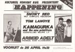 35. LANOYE e.a., Tom ‘Kultureel Konvent R.U.G. presenteert Happening’. (Flyer). Tweezijdig bedrukte plano met illustraties. 15,4 x 21,5 cm.