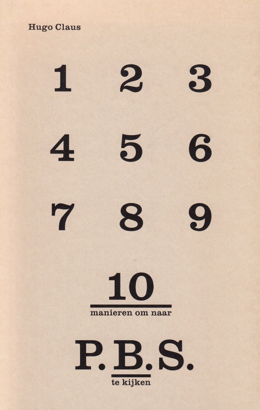 10. CLAUS, Hugo 10 manieren om naar P.B.S. te kijken. (Met negen tekeningen door de auteur). Landgraaf, Herik, 1993. Ingenaaid. 24 p. Gedrukt in een oplage van 225 genummerde en door de dichter gesigneerde exemplaren. 1e druk.
