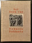 17. (DIJKSTRA, Johan – H.N. WERKMAN) Het boek van Trijntje Soldaats. Met prenten en initialen, in hout gesneden door Johan Dijkstra. Een woord ter inleiding van Herman Poort. Groningen, Noordhoff, (1928). 27 x 20 cm. Linnen. Onafgesneden. (16), 80 p. Gedrukt in kleuren door H.N. Werkman in een oplage van 600 exemplaren. 1e druk. Schutbladen als altijd verbruind, maar een mooi exemplaar, vrijwel zonder de gebruikelijke vlekjes.